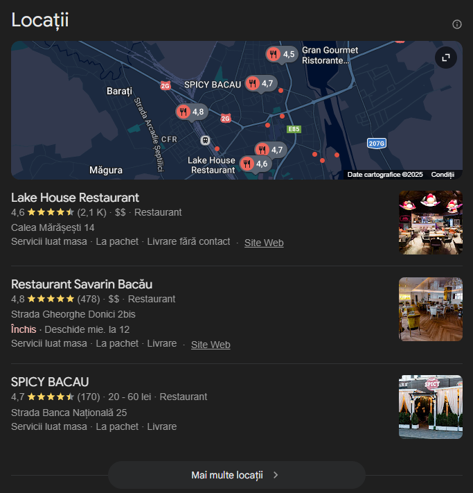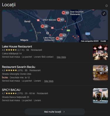 Statistică relevantă: „Peste 80% dintre utilizatori caută afaceri locale pe Google, iar 50% dintre ei vizitează locația în aceeași zi.”